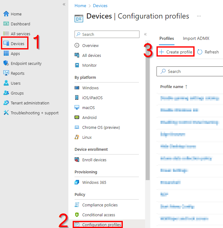 - Go to Devices, Configuration Profiles, and hit Create Profile