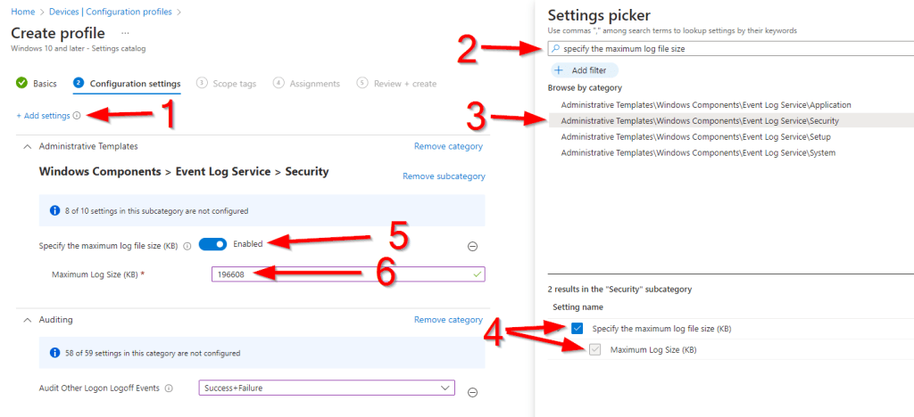 This alone will configure the events to log however, there is one other improvement we can make while we are here. This is not necessarily required but allow me to explain why it’s nice to have. By default, the Security Log in Windows will reach a certain size (MB) and then begin overriding events to ensure it doesn’t break that size. And, by default, the maximum file size for the Security log is only 20 MB. That’s really not that big. Even with default logging only on a non-daily used system my log only goes back around 45 days. That’s not great, especially as you move to a daily driven system with even more logging enabled. You might find it running down into only a few day’s worth of logs. While the event collector scripts won’t have too much trouble collecting those events from something like an always online Windows 365 machine, physical devices are another story. Additionally, it’s not ideal for troubleshooting scenarios where you might want access to month’s worth of other non-collected events.
