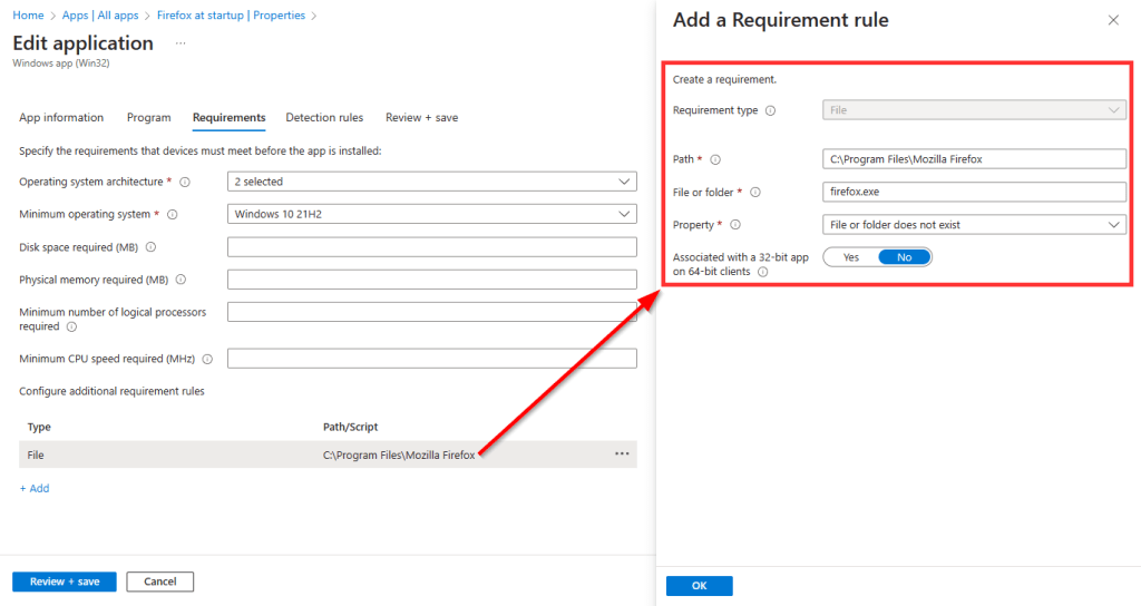 You will need to wrap this into an IntuneWin file. The folder to package is the root “Firefox at startup” and the installer to point to is the FireFoxDrop.ps1.