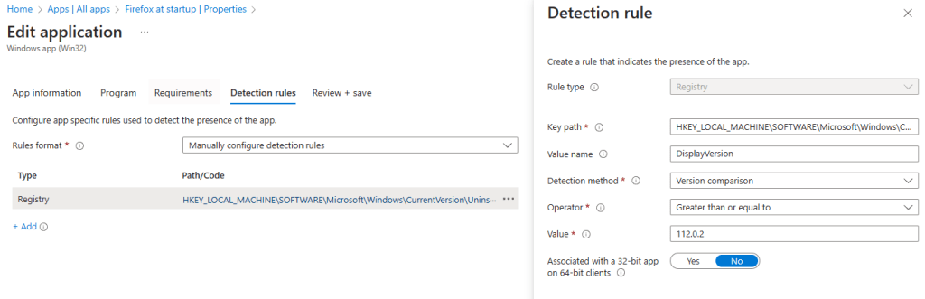 64-Bit app: Computer\HKEY_LOCAL_MACHINE\SOFTWARE\Microsoft\Windows\CurrentVersion\Uninstall - $AppVersion needs to be the exact DisplayVersion of the app as seen in the registry. You will find this in the same location. If you want to follow along and have downloaded a Firefox MSI, you will likely need to adjust this!