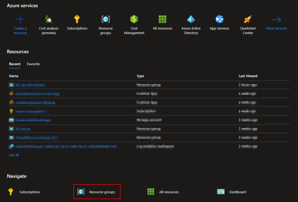 Note: Once you do this, this Resource Group will show in the Azure Recent menu which is above the Navigate section.