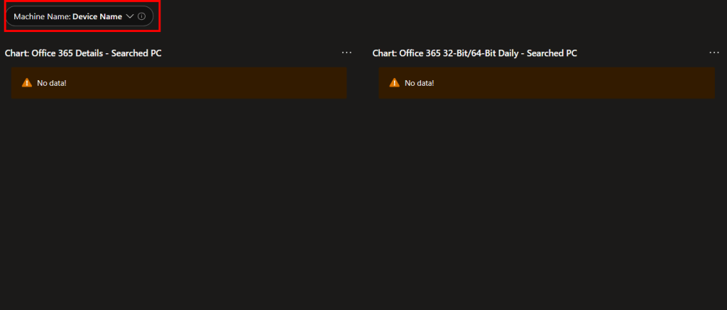 There are a couple of quires (shown below) built specifically for monitoring a given device regarding the nature of it’s Office (32 or 64-bit). You might not have any devices running 32-Bit office, the “List: Office 365 32-Bit Devices” query just above this one helps you answer just that question, but if possible I would type a real device name in here to hopefully make this section look functional instead of having strange warnings by default.
