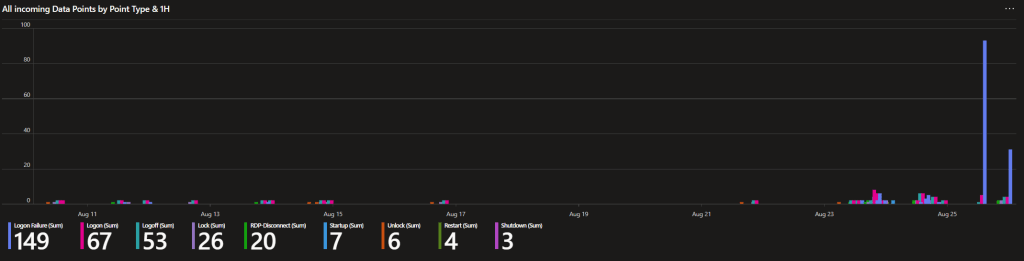 This is a spiritual successor, or predecessor really, to the RDP Disconnect monitoring in my Windows 365 monitoring. It’s tracking RDP disconnects over time. This lets you monitor for spikes in RDP drops suggesting something has gone wrong at a larger/higher level.