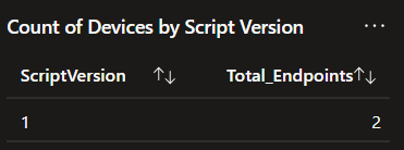 This cute little list shows the number of unique machines checking in and breaks that down further by what version of the collection script they checked in with most recently. So, if you are deployed to 10,000 devices using version 1, you should see 10,000 devices checking in with version 1. If you are doing an update and have version 2 deployed to half the audience, you would see 5,000 on 1 and 5,000 on 2.