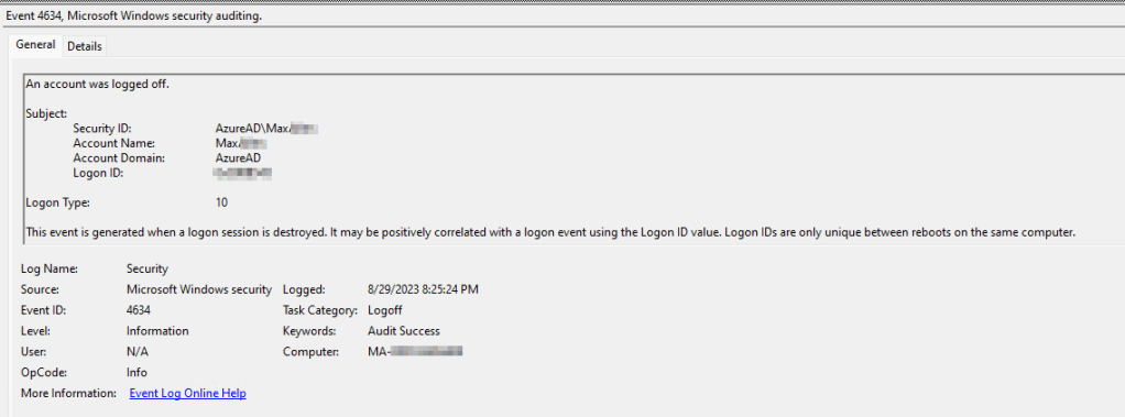 - Security Event ID 4634 – Logoff