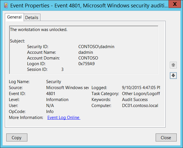 - Security Event ID 4801 – Unlock